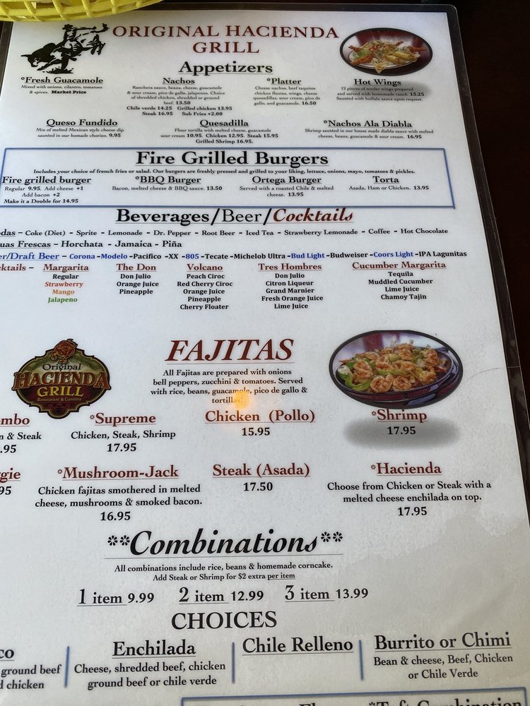 Introducing Original Hacienda Grill, a vibrant fusion of American and Mexican cuisine located in Bakersfield, CA. This salad-centric menu offers a variety of options for vegans and meat-lovers alike. The restaurant accommodates various dining preferences, from casual dining to catered events, with options for delivery, takeout, and reservations. The ambiance is family-friendly, with ample parking and outdoor seating available. Enjoy the convenience of credit card and Apple Pay transactions, as well as free Wi-Fi and a full bar with TV for entertainment. The skilled waitstaff ensures a top-notch dining experience, whether you're stopping by for lunch or dinner. Don't miss out on the drive-thru option for on-the-go dining, and feel free to bring your furry friend along, as dogs are welcome. Original Hacienda Grill is a must-visit spot for those seeking delicious flavors and a welcoming atmosphere.